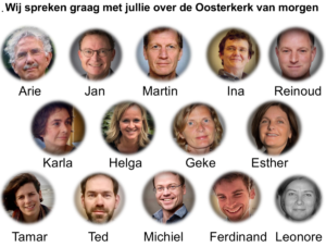 18 maart aanmelden voor een gesprek via het e-mailadres: toekomst@oosterkerkzeist.nl of via telefoonnummer 030-6974397 (Leonore Koerselman). Nadat jij je hebt opgegeven neemt een van ons contact met je op om een